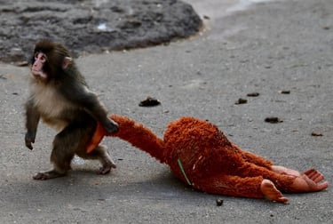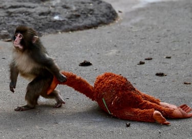 Punch, a young macaque in Japan, walks upright while holding a surrogate object — a stuffed orangutan that provides safety and regulation. His unusual gait reveals how brains adapt under constraint, demonstrating motor plasticity, resilience, and the nervous system’s ability to discover new solutions in real time.
